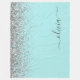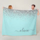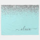 Manta de peluche con monograma de nombre e inicial de purpurina brillante azul aqua y plateada. Esto hace que sea el regalo perfecto para cumpleaños de 16 años, boda, despedida de soltera, aniversario, baby shower o fiesta de soltera para alguien que ama el lujo y los estilos elegantes y glamurosos.