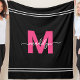 Personalizado Glamoroso Monograma Negro y Caliente Rosa. Añada un toque divertido y elegante a su habitación dormitorio, casa de hermandad o cualquier espacio con esta manta personalizada. Con un elegante fondo negro, el diseño muestra una vibrante inicial rosada caliente, emparejada con un florido nombre de guión blanco para una moda y un aspecto moderno. La manta se acentúa con detalles de rayas en cada extremo, añadiendo un toque lúdico al diseño acogedor. Personalizable completo, todos los colores se pueden ajustar a tu estilo personal y a tu espacio. Perfecto como un regalo reflexivo para la decoración de la habitación dormitorio, los relojes de casa, los cumpleaños o cualquier ocasión especial, esta manta monocromática combina el estilo, la calidez y la practicidad para crear una novedad en tu casa.