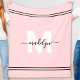 Personalizado Rubor Monograma blanco y rosa. Añada un toque divertido y elegante a su habitación dormitorio, casa de hermandad o cualquier espacio con esta manta personalizada. Con un suave fondo rosado, el diseño muestra una inicial blanca y nítida, emparejada con un nombre de guión negro para una moda y un aspecto moderno. La manta se acentúa con detalles de rayas negras en cada extremo, añadiendo un contraste divertido al diseño acogedor. Personalizable completo, todos los colores se pueden ajustar a tu estilo personal y a tu espacio. Perfecto como un regalo reflexivo para la decoración de la habitación dormitorio, los relojes de casa, los cumpleaños o cualquier ocasión especial, esta manta monocromática combina el estilo, la calidez y la practicidad para crear una novedad en tu casa.