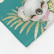Esta bonita manta de lana presenta un colorido patrón con un oso koala y un pájaro toscano como características. También se incluyen flores de hibisco rosas y amarillas y hojas tropicales. En el centro hay un banner redondo con su monograma y nombre en color rosa. Todo se coloca sobre un fondo verde azulado bonito, y la parte superior de la manta tiene un borde verde azulado sólido. ¡Ideal para el dormitorio de una niña!