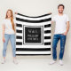 Elegante manta de monograma personalizada de iniciales personalizadas con un patrón rayado en blanco y negro con sus iniciales y nombre familiar con su fecha establecida en un cuadrado bordeado de negro con un texto blanco clásico. Diseñado por Thisisnotme©
