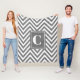 Manta Polar Monograma Gris Chevron Fleece Blanc