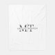 Este diseño de manta de lana es minimalista y elegante, con un logo centrado en negro sobre un fondo blanco y claro. El logotipo consta de dos grandes iniciales en una fuente serif clásica, separadas por una línea vertical delgada que añade equilibrio a la composición. Debajo de las iniciales, hay una línea de texto más pequeño en mayúsculas, usando una fuente sans-serif moderna para crear un contraste refinado. El diseño es sencillo y depurado, lo que le confiere al conjunto un toque de elegancia y elegancia.