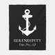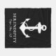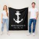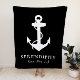 Una manta negra de temática náutica moderna de moda para el barco que cuenta con un ilustracion blanco de ancla. Monograma el nombre de tu barco y su ubicación en una elegante tipografía blanca.