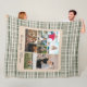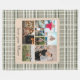 Neutral Plaid moderno patrón sin fisuras en tonos sabios y crema con múltiples fotos familiares junto con "love you Mom" en serif.