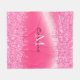Purpurina de goteo de color rosado de Neon Fushia metálico impreso en Relieve metalizado falso en la parte superior e inferior, con un Monograma personalizado centrado en esta manta cómoda y acogedora