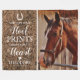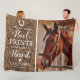 Rústica manta de pulgas conmemorativas ecuestres con una foto atesorada de tu querido caballo, un fondo estable de heno, una herradura, corazón, una cita dulce de recuerdo de caballos que dice "dejaste tus huellas de pezuñas para siempre en mi corazón", más su nombre, y fechas.