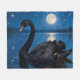 A detailed black swan glides on a calm lake under moonlight. This image features complementary colors and reflections, evoking classical academic and romantic art styles.