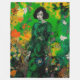 Una pintura generada por IA de una mujer con un vestido verde caminando por una pradera verde