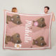 Este diseño presenta a una mujer afroamericana con aros rosados, sombríos, afro y dorados, un bubblegum rosado, una flor en el pelo, un aspecto relajado y un retoño. Puedes personalizar la manta con su nombre o el tuyo.