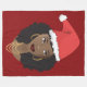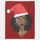 Este diseño presenta a una mujer afroamericana con un sombrero de Papá Noel sobre su fabuloso afro y accesorios de oro sobre un fondo rojo.