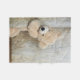 Una manta con una preciosa fotografía de un lindo oso relleno, parado junto a una rústica pared de madera/fondo.