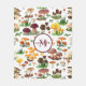 Patrón de ilustracion de hongos coloridos con fondo blanco. Monograma opcional