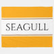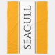 Este diseño costero presenta el texto SEAGULL dentro de una amplia franja blanca central realzada con rayas de carreras marrón y blanco contra rayas exteriores naranjas amarillas brillantes. El texto se puede personalizar.