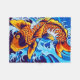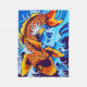 Pescado naranja koi al estilo del tatuaje en el fondo de agua azul alrededor del pez koi