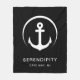 Una manta negra de personalizado con temática náutica para el barco que cuenta con un moderno ilustracion blanco de un ancla en círculo. Monograma con el nombre de su barco y ubicación en una tipografía blanca simple.