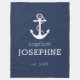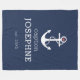 Hace un regalo perfecto con ancla náutica de corazón rojo y la palabra "nombre de la leyenda" y fecha establecida en tipografía moderna sobre una manta de lana azul marino.