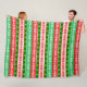 MANTA POLAR NAVIDAD ORNAMENTALES DISEÑO VERDE ROJO BLANCO