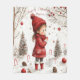 Niña adorable con un abrigo rojo, gorra y botas. Está afuera en la nieve decorando los árboles con adornos rojos. Ella ha agregado latas de dulces en la nieve. Qué lindo. Personalice si lo desea.