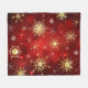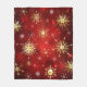 Manta Polar Navidades Copos de nieve dorados con fondo rojo