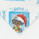 Celebra la temporada de fiestas y mantente caliente con esta manta cubierta con estos adorables Dachshunds usando sombreros de Santa en medio de copos de nieve y las palabras, ¡Feliz Amanecer! Gran idea de regalo de vacaciones para la familia y amigos amantes de Doxie.