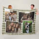 Rústico verde afligido patrón de argyle frazada de vacaciones con 4 plantillas de fotos