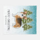 El original ilustracion personalizado de Destei de un abrigo tricolor de cabeza roja Pembroke Perro de raza Corgi galés. El perro es colocado en una escena invernal con tres abetos verdes y la caída de la nieve. El fondo es un degradado de azul a blanco que da al diseño ese aspecto frío del invierno. También hay un área de texto personalizable que ahora dice "¡Feliz Navidad!". Bajo él hay otro área de texto personalizable para un nombre de familia u otro texto personalizado.