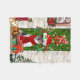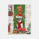 Navidades de Jack Russell Dog sentados afuera de la casa decorada con flores de flores de Navidad, el árbol de Navidad es una idea de regalo perfecta para los amantes del perro.