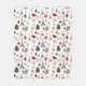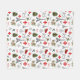 Navidades franceses con una torre Eiffel vintage, fleur de lis, y PARIS texto y corona en blanco y negro, junto con holly, poinsettia, árboles navideños victorianos y ramas de pino en rojo y verde sobre blanco, para hacer una festiva manta de lana de Noel francesa.