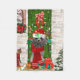 Navidades de perro caniche sentados afuera de la casa decorada con corona de Navidades, el árbol de Navidad es una idea de regalo perfecta para los amantes del perro.