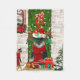 Navidades del perro Schnauzer sentados afuera de la casa decorada con flores de Navidad, el árbol de Navidad es una idea de regalo perfecta para los amantes del perro.