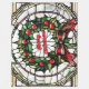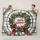 Disfrute de esta manta decorativa con una corona de Navidad en un diseño de cristal manchado.