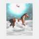 Mi hermoso arte equino, mi imagen, muestra una impresionante bahía y blanca, pinto arábigo bailando en la nieve mientras Santa vuela. Pintura ©Sally Lannier/PDD Horse World