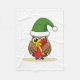 Ilustracion de un tímido búho de elfo feliz con sombrero de santa verde y regalo rojo con cinta amarilla. Este lindo diseño personalizado es un regalo para los amantes de las lechuzas, los amantes de las aves y los amantes de la fantasía o de las películas mágicas. ¿Estás emocionado de recibir tu regalo a los Navidades?