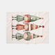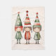 Tres adorables Navidades elfos vestidos con trajes festivos verdes y rojos, cada uno con gorras altos y únicos decorados con estrellas, rayas y patrones de invierno. Su bonito y minimalista estilo refleja el espíritu de las vacaciones de una manera deliciosa.