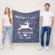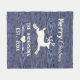 La decoración personalizada de los Navidades es una buena manera de celebrar la temporada navideña para decorar tu casa o regalar. Este diseño de manta presenta un fondo azul rústico de madera empanada con un elegante reno volador en crema con las palabras "Feliz Navidad" encima del ciervo. Debajo está el nombre de tu familia para personalizar, una flecha decorativa con corazón, y el año en que tu familia fue establecida. Diseñado por la artista © Susan Coffey.