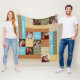 Divertidos Navidades de imitación personalizados manta con 8 fotos y texto editable. Creado con adornos, campanas, coronas, arcos, copos de nieve, hueso y poinsettia pintados a mano, con colores tradicionales y motivos divertidos con un toque nostálgico. Perfecto para regalar. Arte original de Leslie Larson.