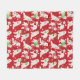 Perros de los Grandes Pirineos Cute vestidos con trajes festivos, sombreros de Santa y jersey de argyle con un patrón de adornos navideños dispersos.