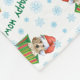 Celebra la temporada de fiestas y mantente caliente con esta manta cubierta de pequeños cachorros ingleses de la marca Setter con sombreros de Santa en brillantes cajas de regalo entre copos de nieve y las palabras: ¡Feliz Amanecer! Excelente idea de regalo de vacaciones para la familia y los amigos amantes de Setter.