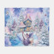 Esta escena presenta un hermoso hada rodeada de criaturas de bosques, incluyendo un dragón y un unicornio, representadas en un mágico promontorio invernal de nieve. La acuarela aporta capricho, magia e imaginación, lo que la hace perfecta para un tema de hada de Navidades.
