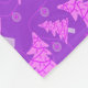 Esta manta presenta un diseño moderno de Navidades con árboles de Navidad de color rosa violeta sobre un fondo violeta con adornos.