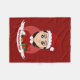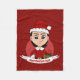 Tira una manta con el ilustracion de una linda y sonriente chica feliz con el pelo negro corto, ella está usando disfraces de Santa Claus rojos y blancos y sosteniendo un regalo; con plantilla de texto editable para tu nombre o mensaje, Navidades diseño de vacaciones con fondo rojo