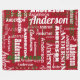 Este divertido y festivo Navidad rojo que repite manta de patrón de graffiti de palabra larga cuenta con tu propio nombre familiar en Navidades clásicos de colores verde y blanco en un patrón de tipografía de diferentes tipos de letra. Este es un gran regalo familiar y una manta súper acogedora para salir en Navidad, ¡y es el regalo perfecto para padres y abuelos!