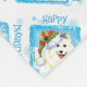 Celebra la temporada de fiestas y mantente caliente con esta manta cubierta con estos lindos Samoyeds usando gorras de medias en medio de copos de nieve y las palabras, ¡Feliz cumpleaños! Gran idea de regalo de vacaciones para la familia y amigos amantes de los sami.