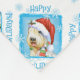 Celebra la temporada de fiestas y mantente caliente con esta manta cubierta con estos adorables Terriers de Sealyham usando sombreros de Santa en medio de copos de nieve y las palabras, ¡Feliz Amanecer! Una gran idea de regalo de vacaciones para la familia y amigos amantes de Sealy.