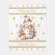 Una manta de muñecas de nieve de Navidad con el nombre decorada con un muñeco de nieve de color dorado y suave copos de nieve de color dorado y adornada con un fondo blanco. El texto principal incluye: Tiempo de Navidades y Nombre y Medio. Para personalizar, simplemente inserte los nombres en nuestra plantilla sencilla. Haz un gran regalo de Navidades.
