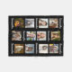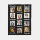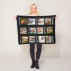 Estas mantas personalizadas del collage de la foto incluyen 12 imágenes cuadradas del Instagram-estilo más primeras o el apellido repetido 8 veces (tales como nombre de su niño o su apellido de la familia). El texto es blanco y el fondo es negro. Utilice las plantillas fáciles para personalizar. "Modifique para requisitos particulares más lejos" para alterar el color de fondo negro o el color de la fuente.