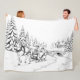 Manta Polar Negro sobre blanco, Navidades Caballo dibujó escen