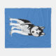 Esta manta personalizable presenta un Husky Siberiano blanco y negro con un fondo azul. El color de fondo se puede cambiar para que se adapte a tu gusto individual.