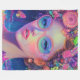 Un impresionante retrato surrealista de fantasía de una mujer radiante adornada con brillantes gafas pastel y una corona de flores de neón y fruta. Enfrentada a un paisaje floral cósmico con mariposas flotantes, esta obra de arte digital rebosa de color, magia y energía femenina.